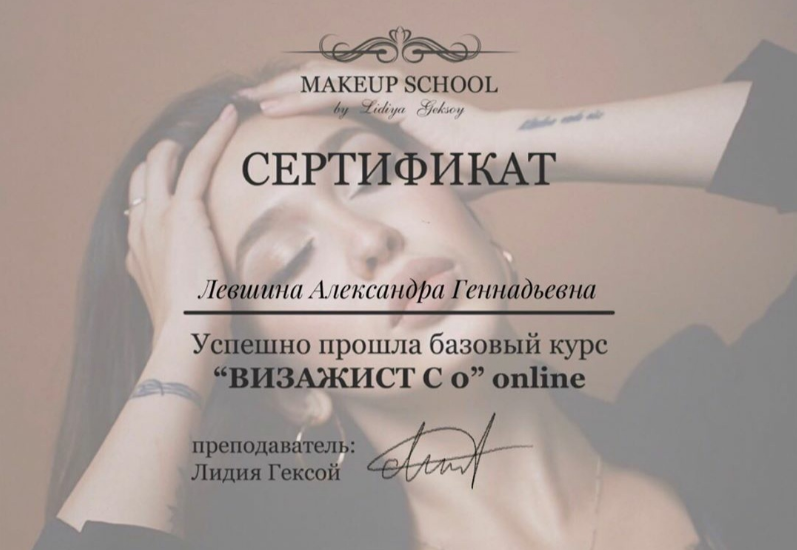Сертификат о прохождении Pin Up курса "Визажист с 0" в онлайн формате